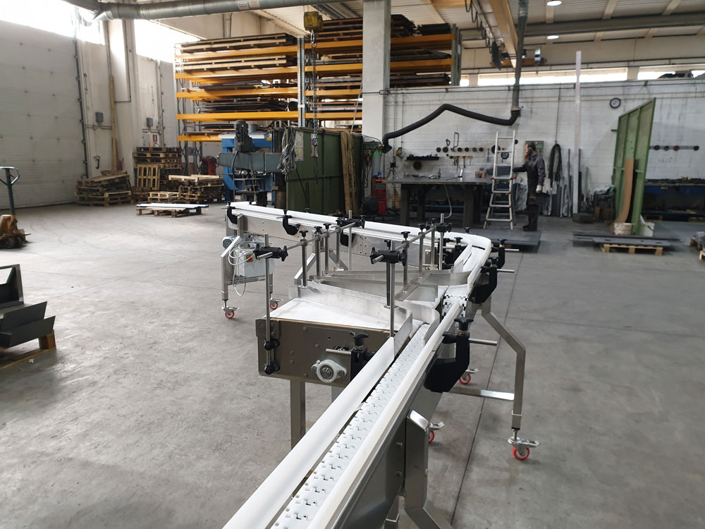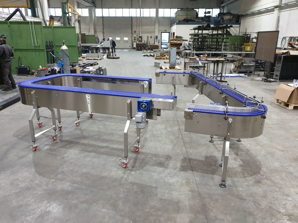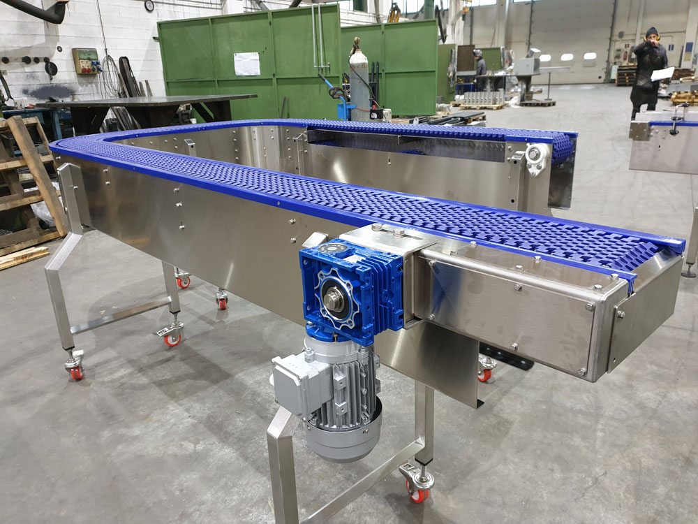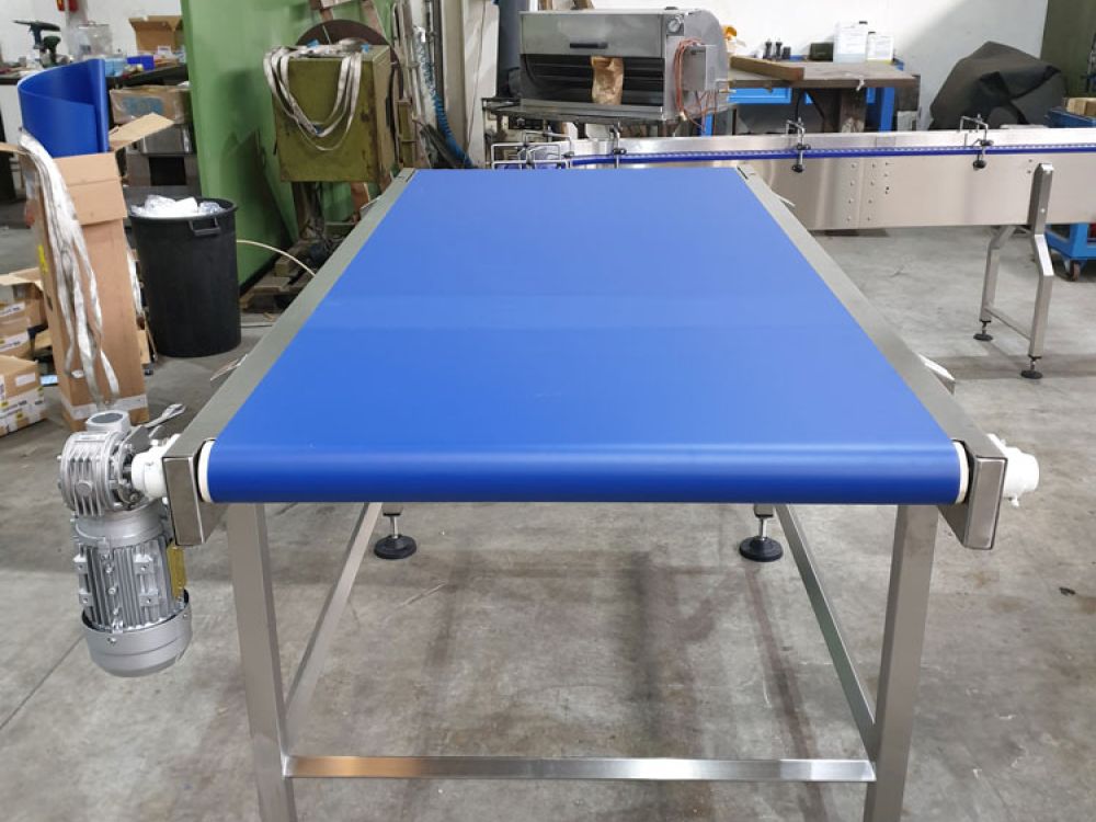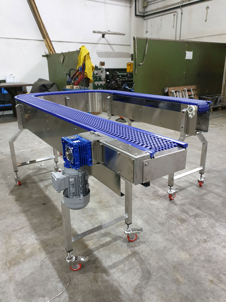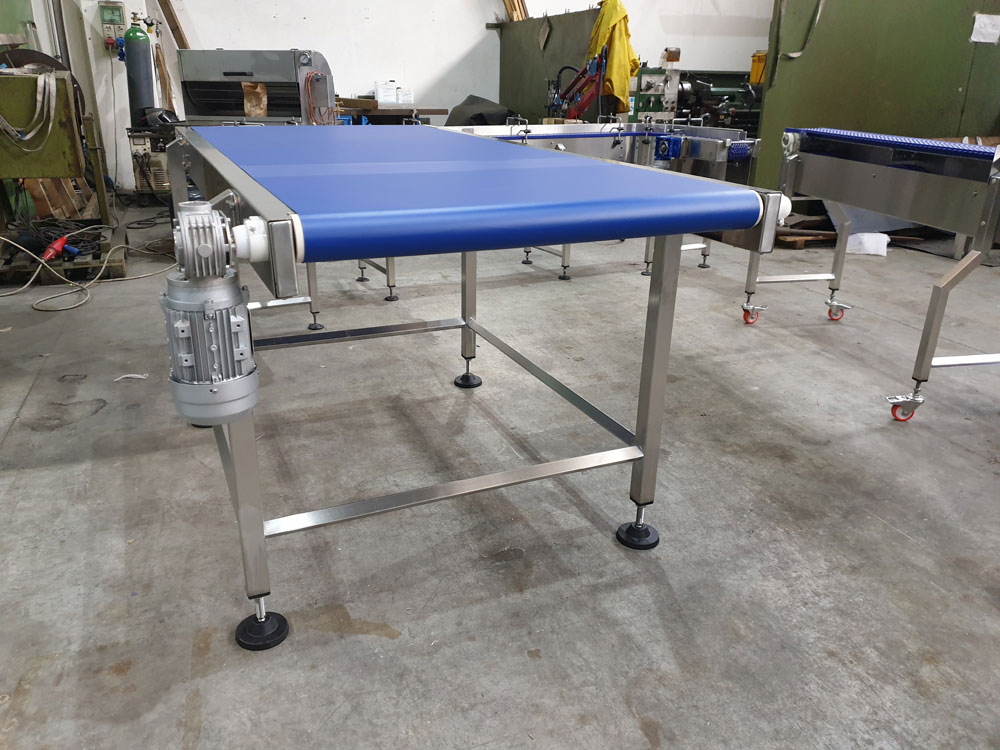 Aisi 304 stainless steel conveyor belt with wheels, with motor and gearmotor.