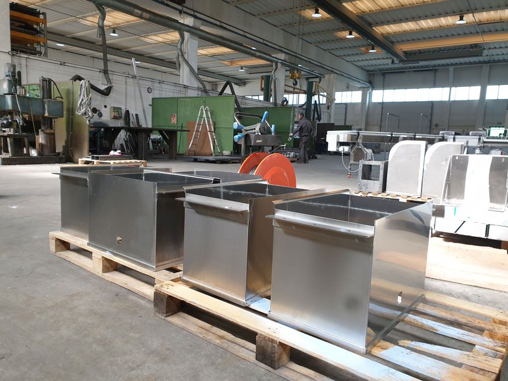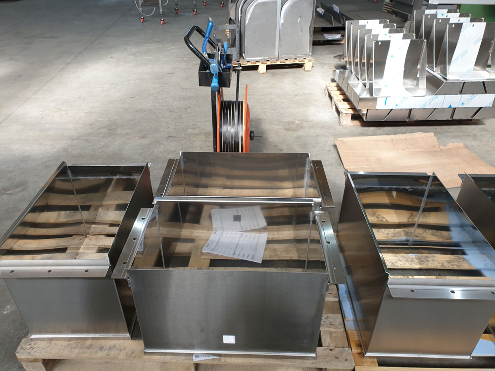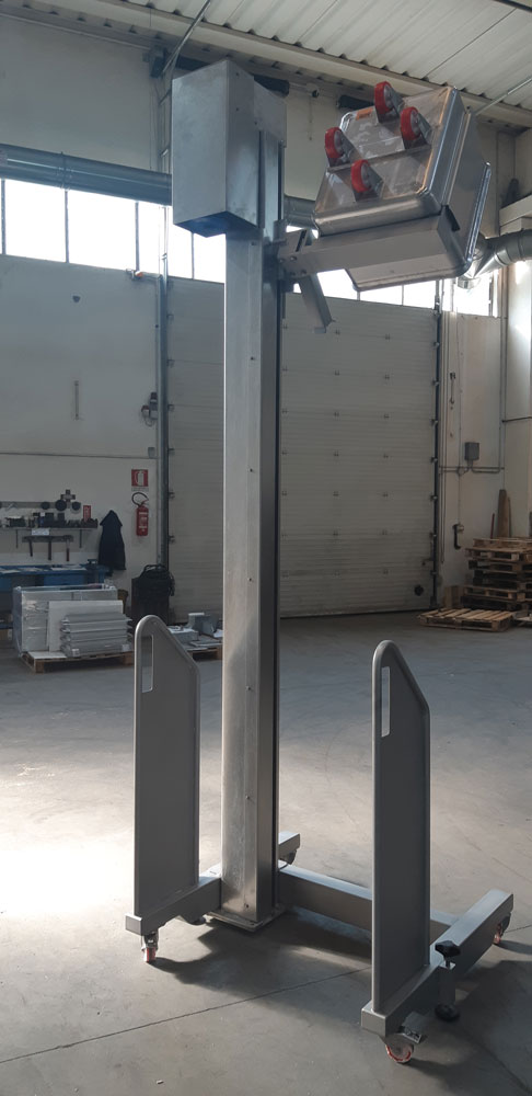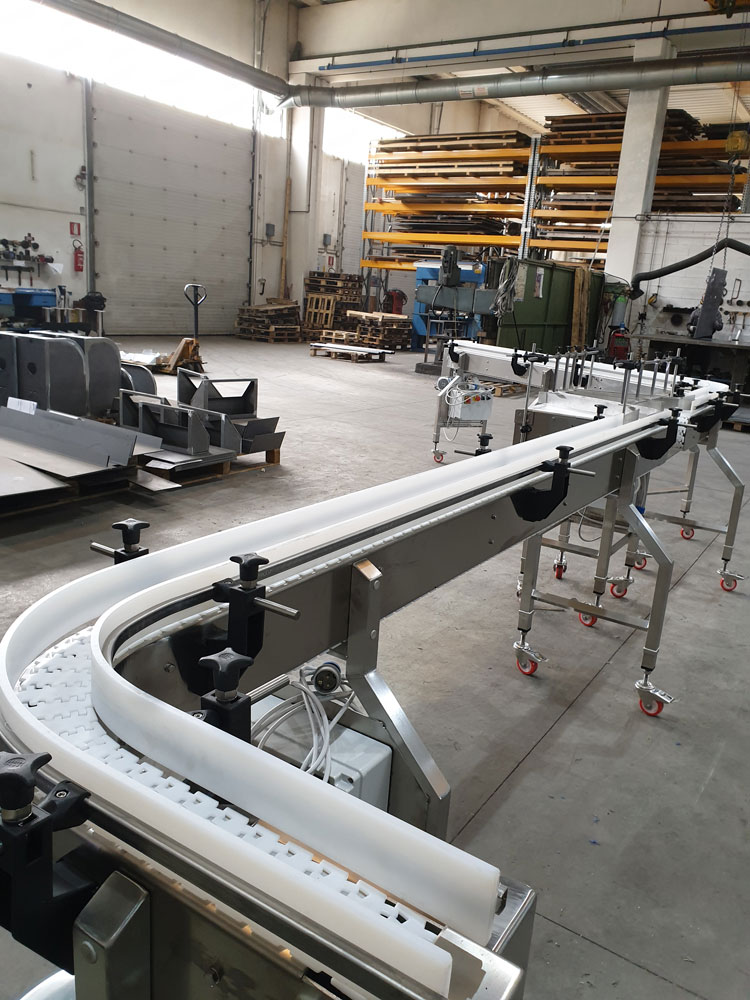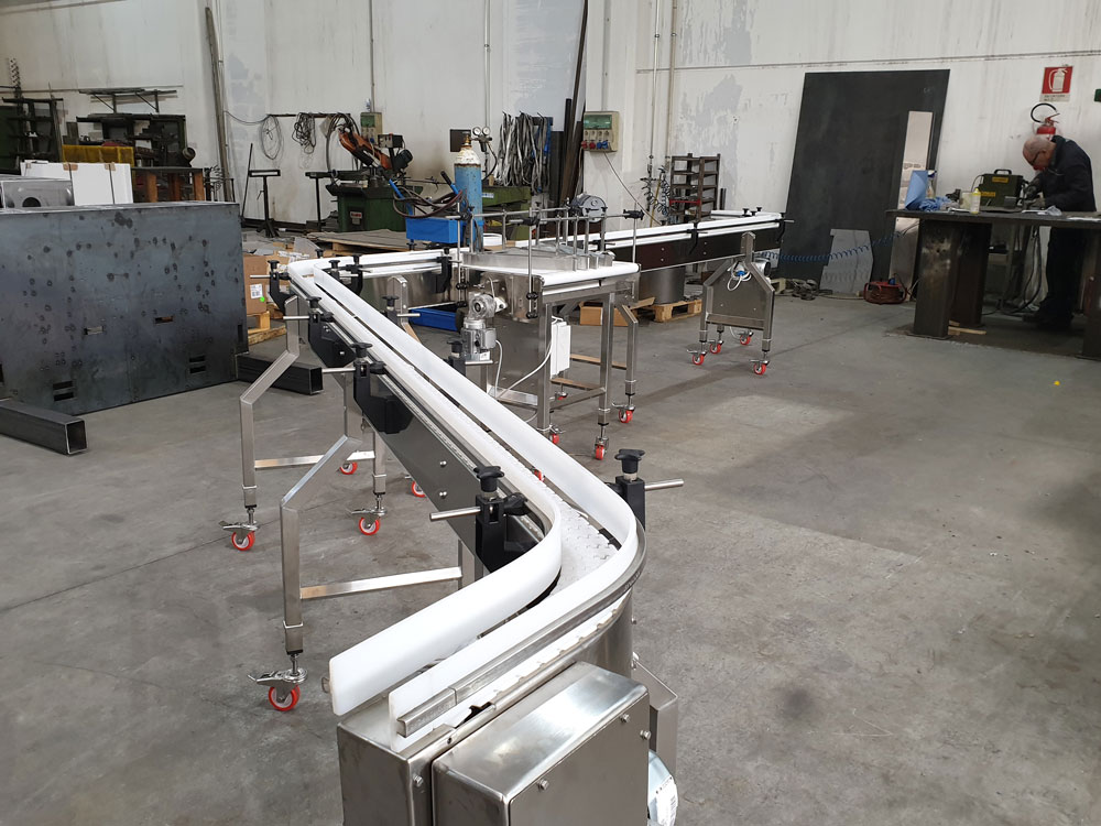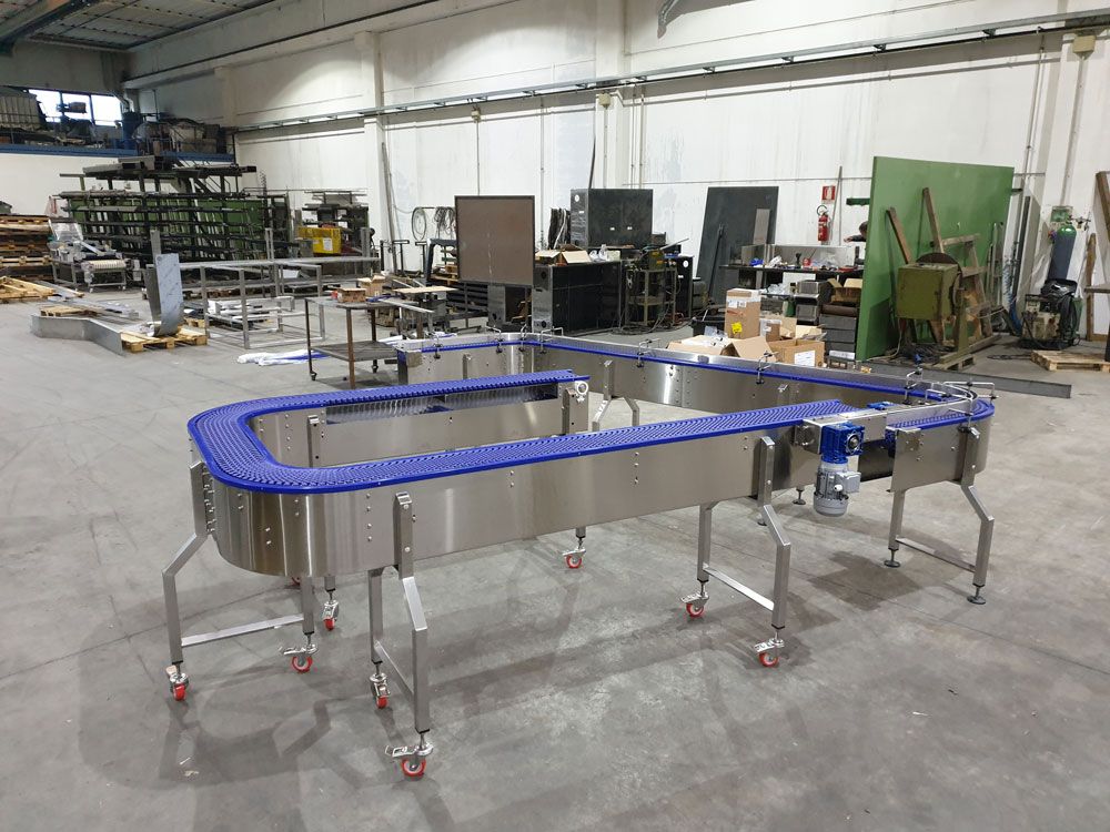 Aisi 304 stainless steel conveyor belt with wheels, with motor and gearmotor.
