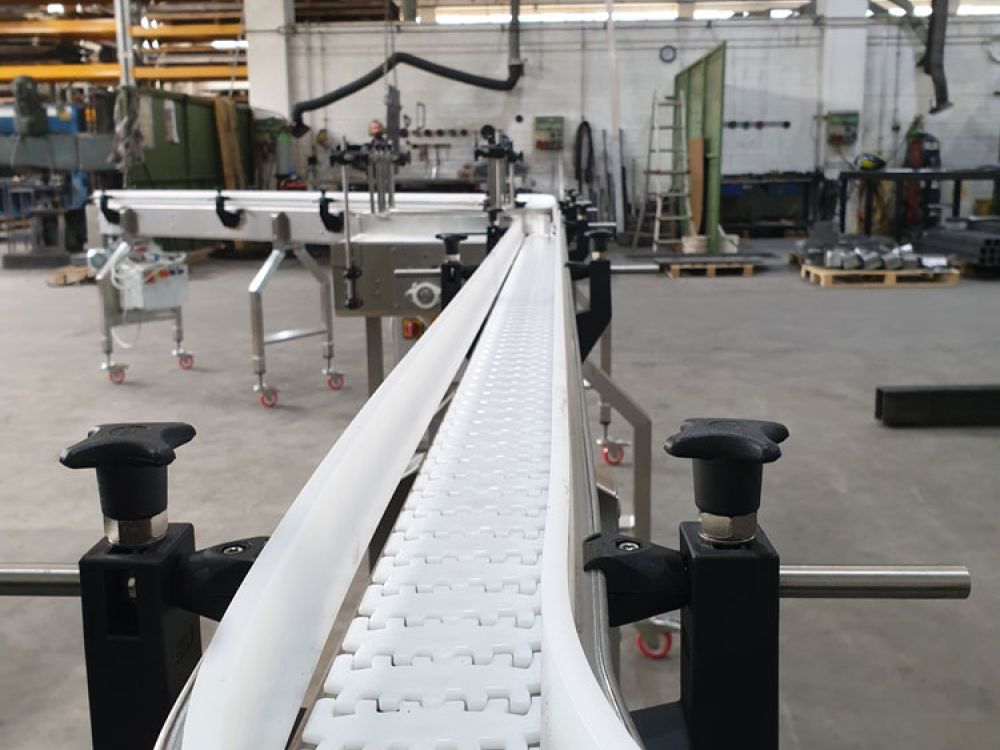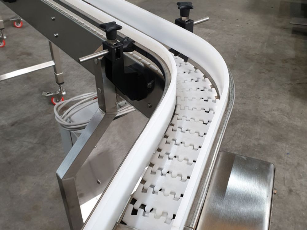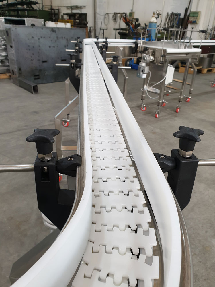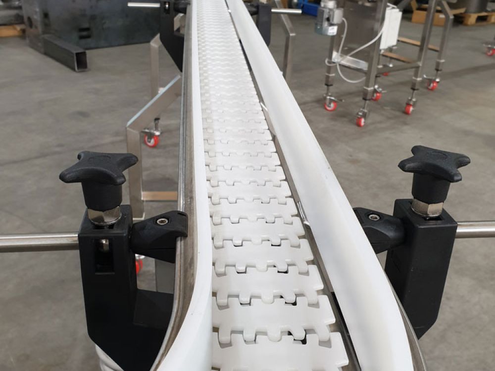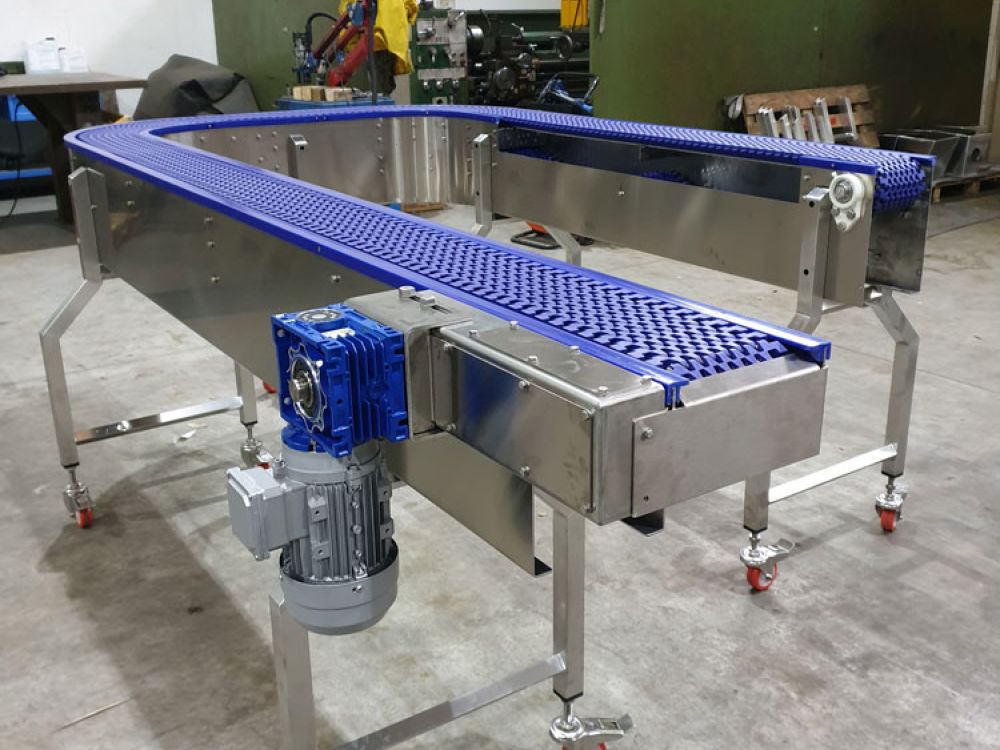 Aisi 304 stainless steel modular conveyor belt with motor and gearmotor.