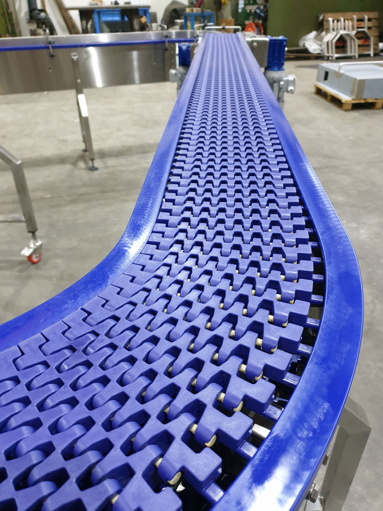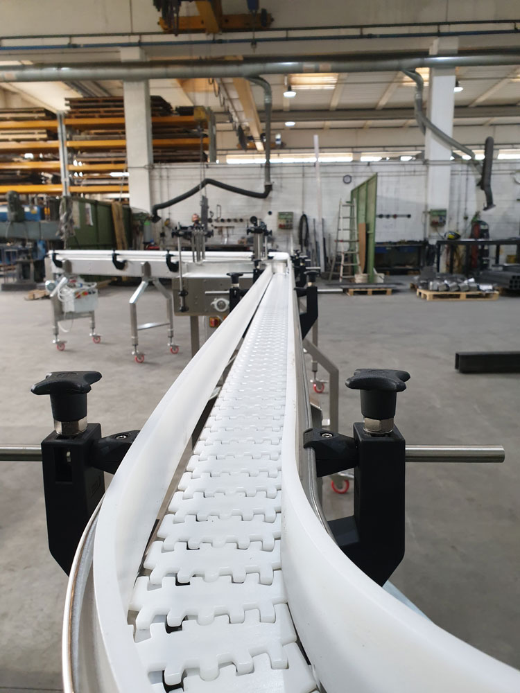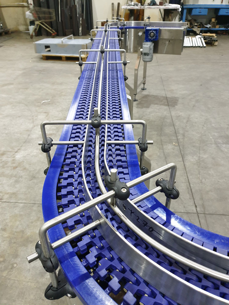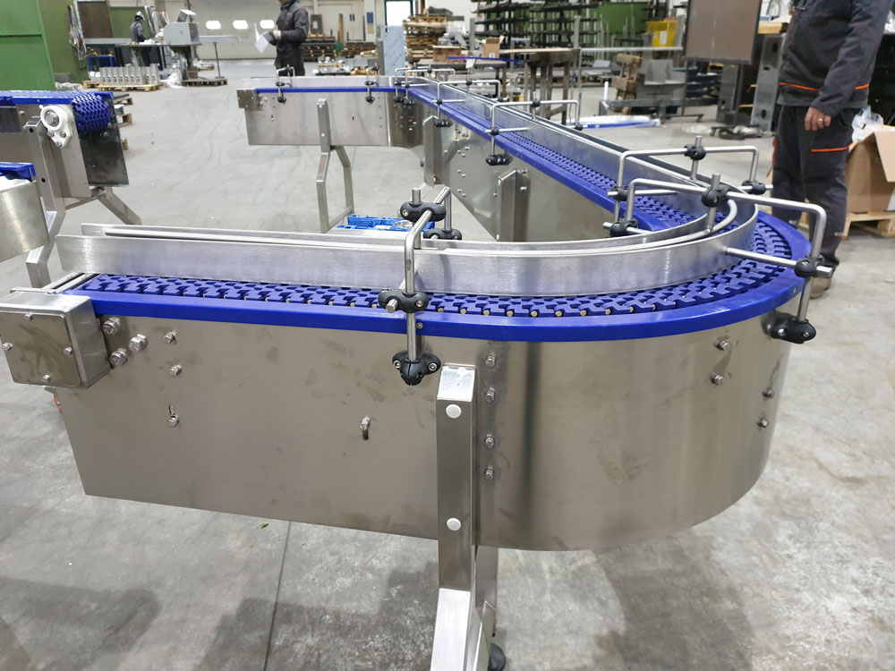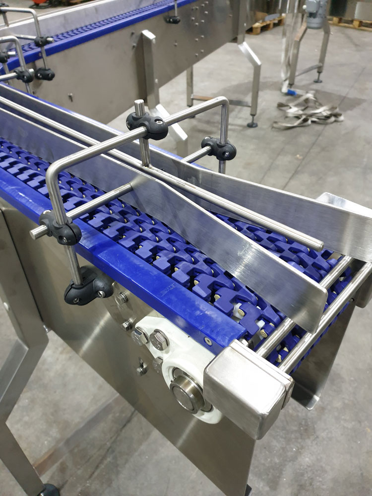 Aisi 304 stainless steel modular conveyor belt with motor and gearmotor.