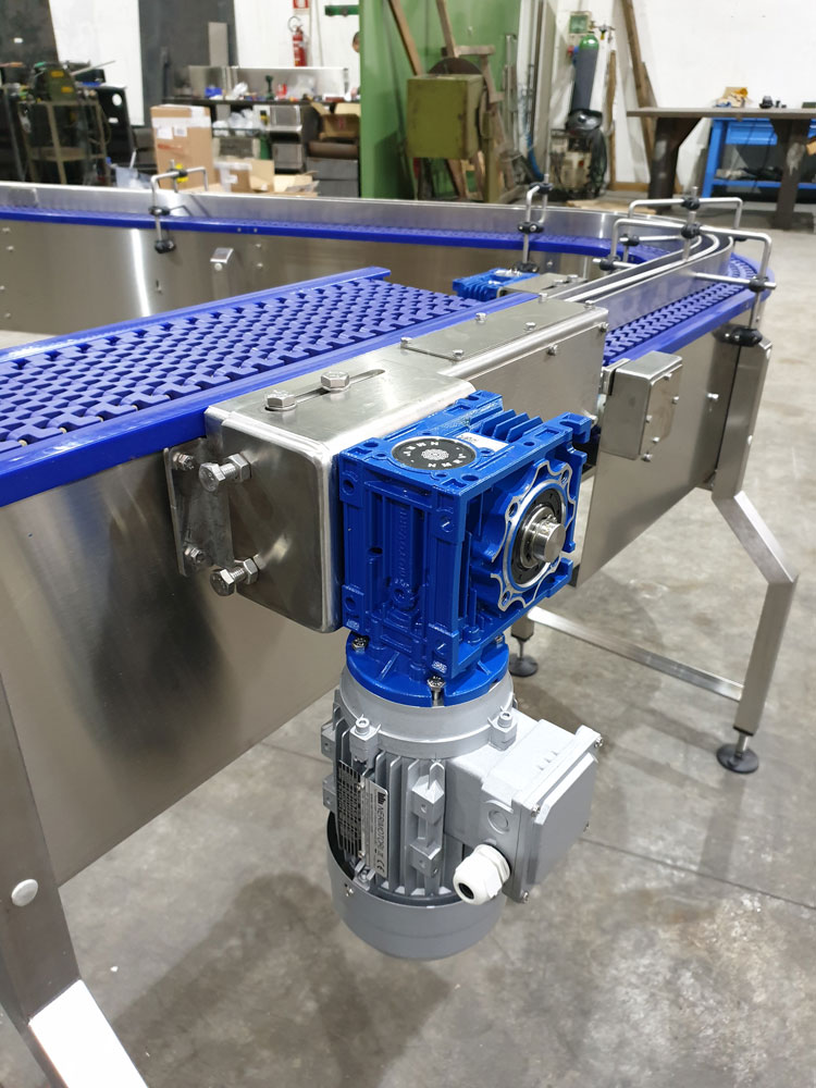 Aisi 304 stainless steel conveyor belt with motor and gearmotor.